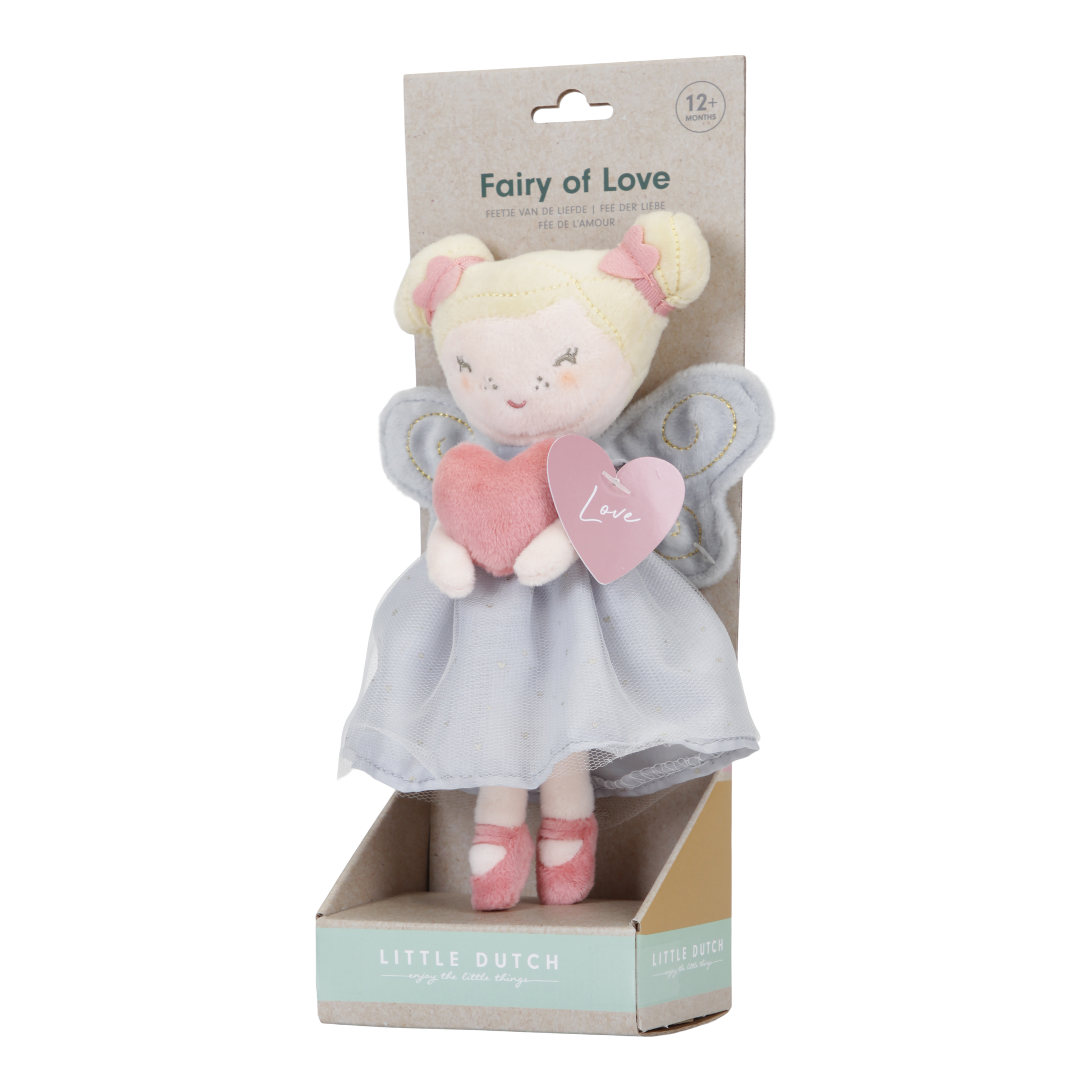 Diese kleine Fee bringt Liebe. Liebe für dich und alle um dich herum. Davon gibt es genug zu verteilen. Aus einer fernen Zauberwelt ist Fee Fay gekommen, um dich mit ihrem liebevollen Herzen zu verzaubern. Sie ist deine beste Freundin und wird immer für dich da sein. Mit ihrem süßen hellblauen Kleid, den Flügeln mit Goldfäden, den blonden Haaren in zwei Duttfrisuren und den Ballettschuhen wird Fay ganz sicher alle Kinderherzen mit Liebe erfüllen. Diese sanfte Fee regt die Fantasie an, erweckt Märchen zum Leben und verleiht der Kindheit Magie.